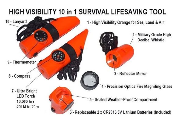 10-in-1 Lifesaving Survival Tool – with Torch & Whistle