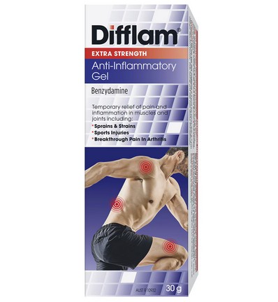 Difflam Anti-inflammatory gel, can be used for sprains, strains, contusions, sports injuries, myalgia, bursitis, soft tissue trauma & breakthrough pain in arthritis