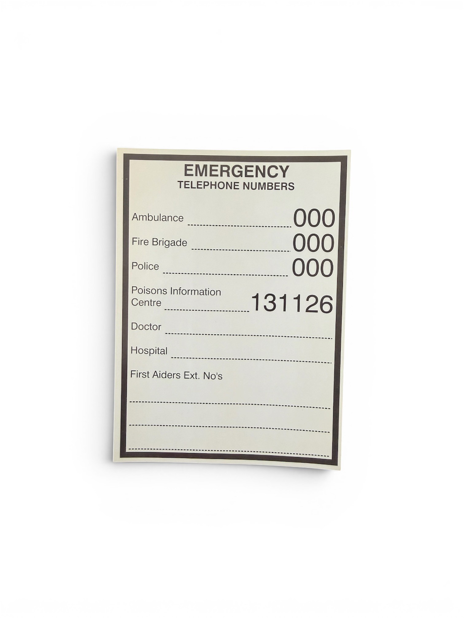 Emergency Telephone Numbers - First Aid Sticker (8 x 10.5cm)