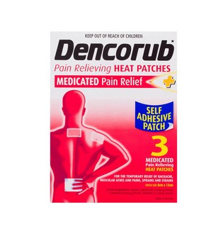 Dencorub Pain Relieving Heat Patches are an easy and convenient way to gain temporary relief of minor aches and pains of muscles and joints associated with backache (lumbago), sprains, and strains. Medicated Pain Relief